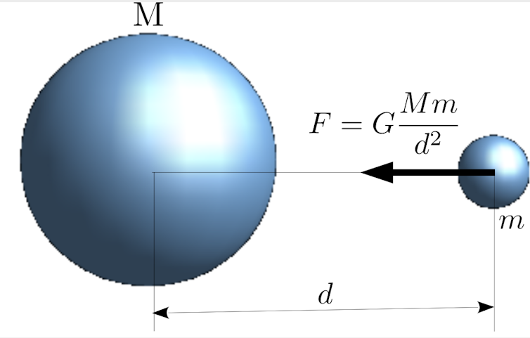 Le point de départ est celui de la loi de la gravitation universelle, proposée et validée par Isaac Newton sur la base de données astronomiques : elle fournit la force d’interaction F essentiellement attractive entre deux masses M et m séparées par une distance d. La force de gravitation est proportionnelle au produit de ces deux masses, et inversement proportionnelle au carré de la distance séparant ces deux masses.