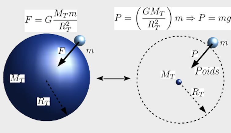 Sur Terre, G se cache dans g et la force de gravitation devient ce qu’on appelle le poids…