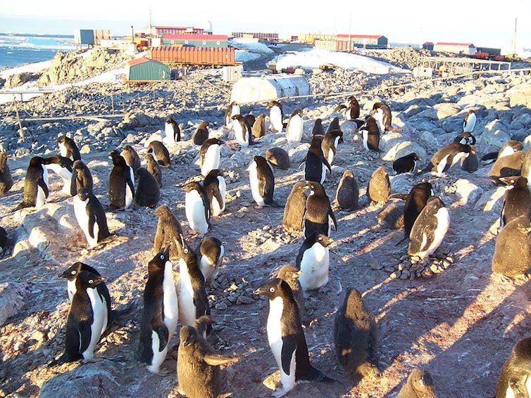 Mais contrairement à ce que j’ai pu éprouver en Mongolie ou en Sibérie, la différence de culture se niche ici dans l’aspect technique du lieu. J’ai la curieuse impression de me poser sur un vaste chantier composé de citernes de fuel, de garages, d’engins de toutes sortes… et dans cet environnement de tôle des dizaines de petits manchots adélies s’activent sans prêter grande attention aux humains, intrus qu’ils semblent tolérer sur leur territoire.