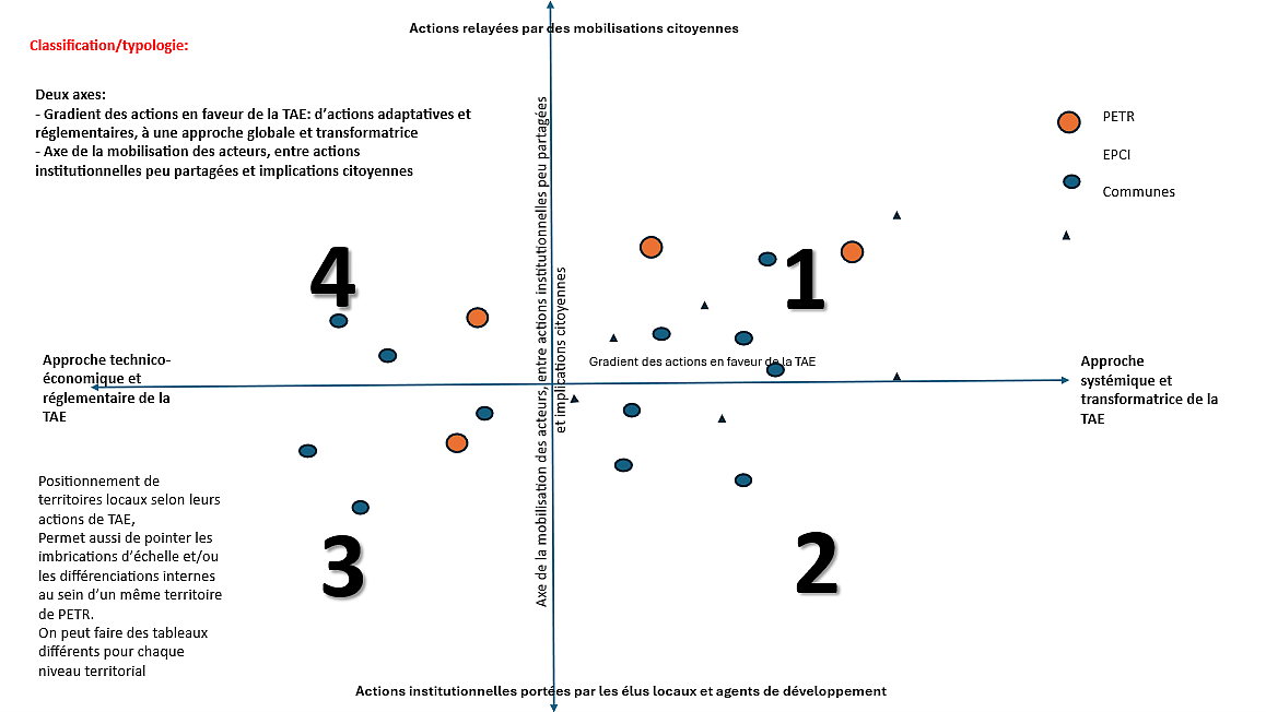 Cadran typologique de positionnement des modes d’action des territoires dans les TAE :