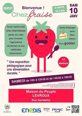 À travers 17 ateliers et 6 panneaux conçus pour petits et grands, l'exposition interactive "Chez Fraise", vous propose de manipuler, expérimenter et observer pour aider à adopter des comportements alimentaires plus responsables et découvrir les découvrir les avantages de la consommation issue d’une agriculture locale.