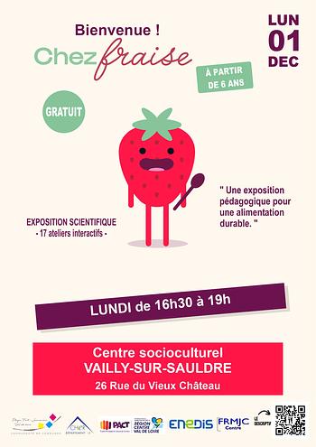 À travers 17 ateliers et 6 panneaux conçus pour petits et grands, l'exposition interactive "Chez Fraise", vous propose de manipuler, expérimenter et observer pour aider à adopter des comportements alimentaires plus responsables et découvrir les avantages de la consommation issue d’une agriculture locale.