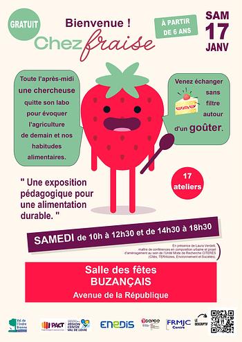 À travers 17 ateliers et 6 panneaux conçus pour petits et grands, l'exposition interactive "Chez Fraise", vous propose de manipuler, expérimenter et observer pour aider à adopter des comportements alimentaires plus responsables et découvrir les découvrir les avantages de la consommation issue d’une agriculture locale.