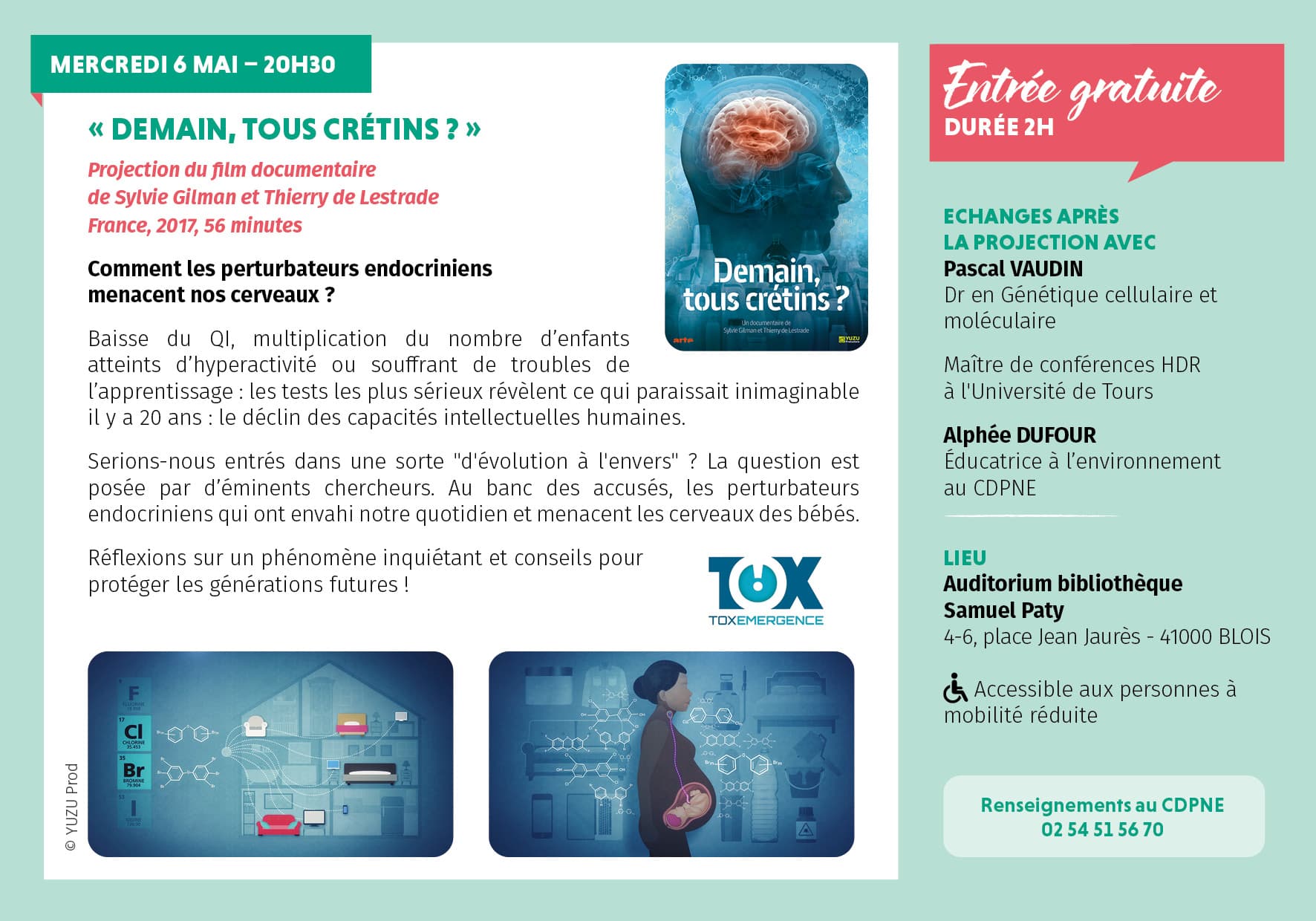 Echanges après la projection avec Pascal VAUDIN, Dr en Génétique cellulaire et moléculaire et maître de conférences HDR à l'Université de Tours et Alphée DUFOUR, éducatrice à l’environnement au CDPNE.