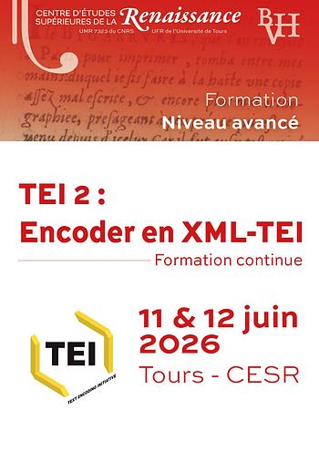 [Formation continue] TEI 2 : Encoder en XML-TEI, niveau avancé | 11 & 12 juin 2026, CESR, Tours