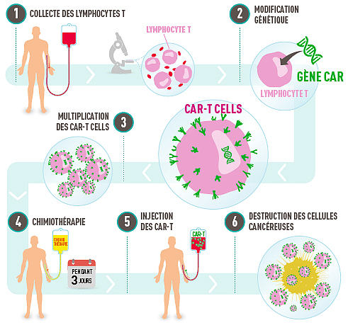 Comment est produit ce traitement sur mesure, à partir d’une aphérèse ? Comment est-il administré ? Quid des effets secondaires ? Quel coût pour ce traitement ? Pour quels patients ? Quel réseau de professionnels ?
